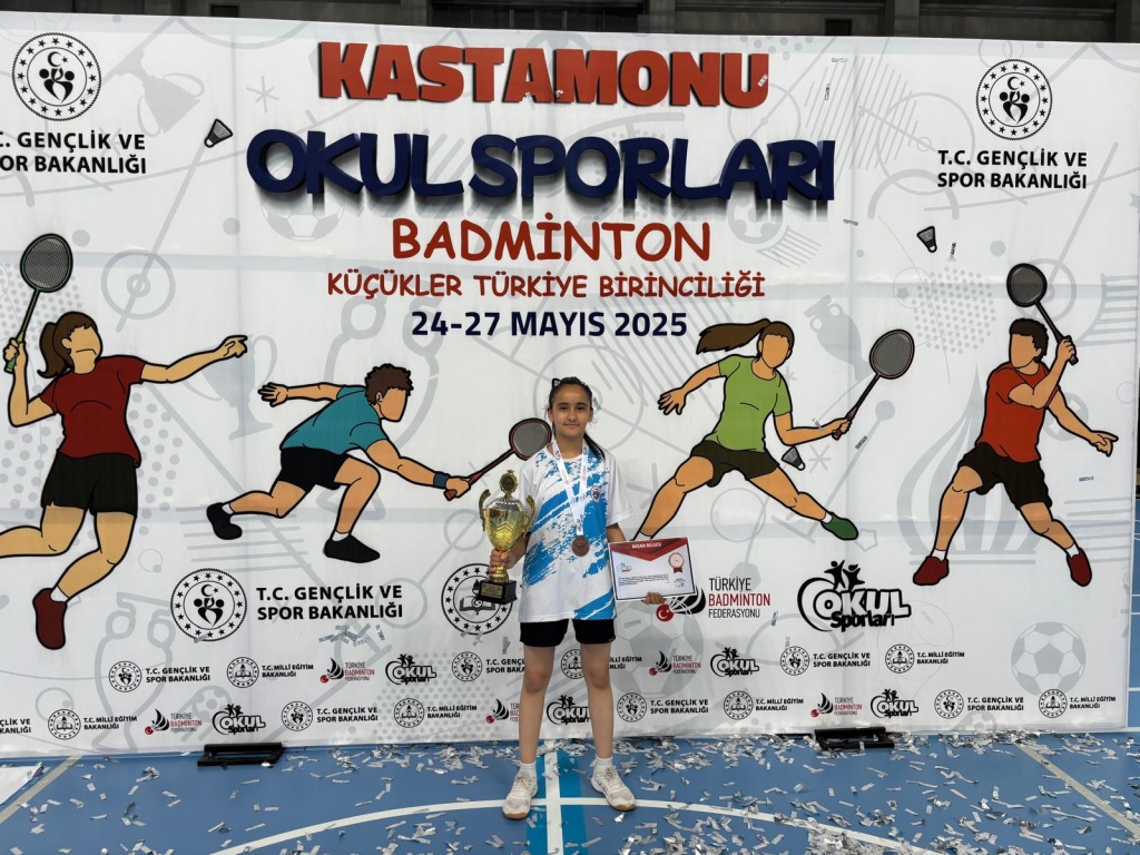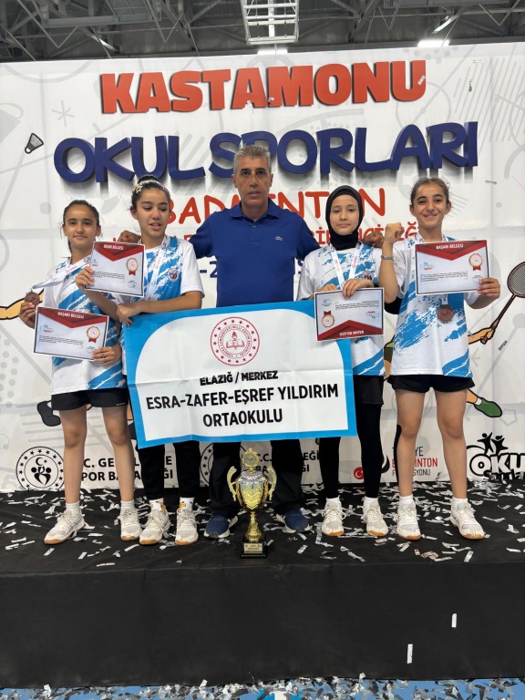 24-27 Mayıs 2025 tarihleri arasında Kastamonu ilinde düzenlenen Okul Sporları Badminton Küçükler Türkiye Finallerinde ilimizi temsil eden Esra Zafer Eşref Yıldırım Ortaokulu kız takımı Türkiye 3.sü olmuştur.Başarılarından dolayı okulumuz beden eğitimi öğretmeni Erkan DAĞ'ı ve öğrencilerimizi tebrik ederiz.
